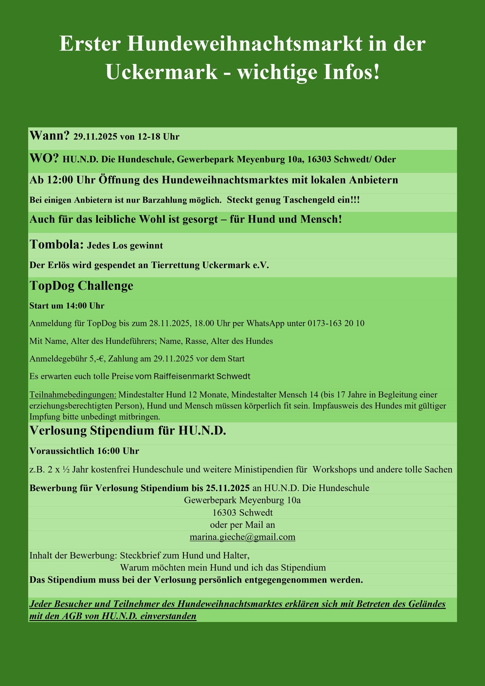18.12.2022 - 04.01.2022 die Hundeschule und Pension wegen Urlaub geschlossen.